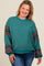 Teal Knit Contrast Sleeve Maternity Plus Pullover
