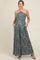 Teal Print Back Cutout Smocked Halter Wide Leg Maternity Jumpsuit