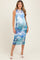 Teal Printed Mesh Overlay Sleeveless Fitted Maternity Midi Dress