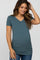 A soft knit maternity top featuring a v-neckline, short sleeves and ruched sides.