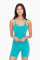 A fitted knit romper featuring a rounded neckline, adjustable cami straps and removable pads at the bust.
