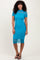 Turquoise Mesh Overlay Mock Neck Short Sleeve Midi Dress