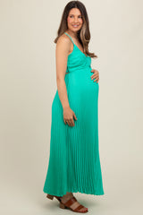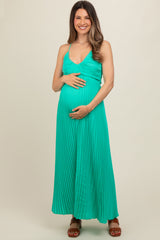 Turquoise Pleated Back Cutout Tie Maternity Maxi Dress