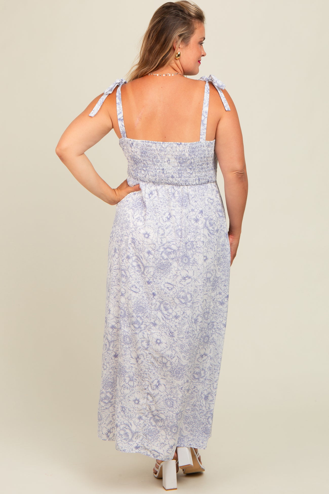 White Blue Floral Tie Strap Maternity Plus Maxi Dress