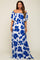 A floral maternity maxi dress with an off the shoulder neckline, a flounce tie, and elastic under the bust. Dress is fully lined.