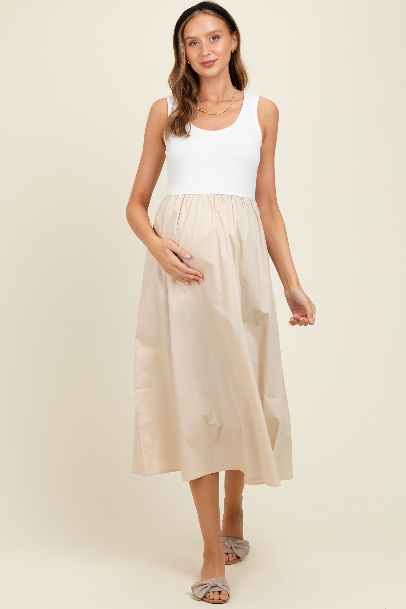 White Knit Contrast Top Sleeveless Maternity Midi Dress