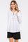 A solid hued top featuring long sleeves with thumb holes, an exposed seam, front buttons and a curved hem.