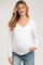 A solid maternity shirt with long sleeves, and a v-neckline.