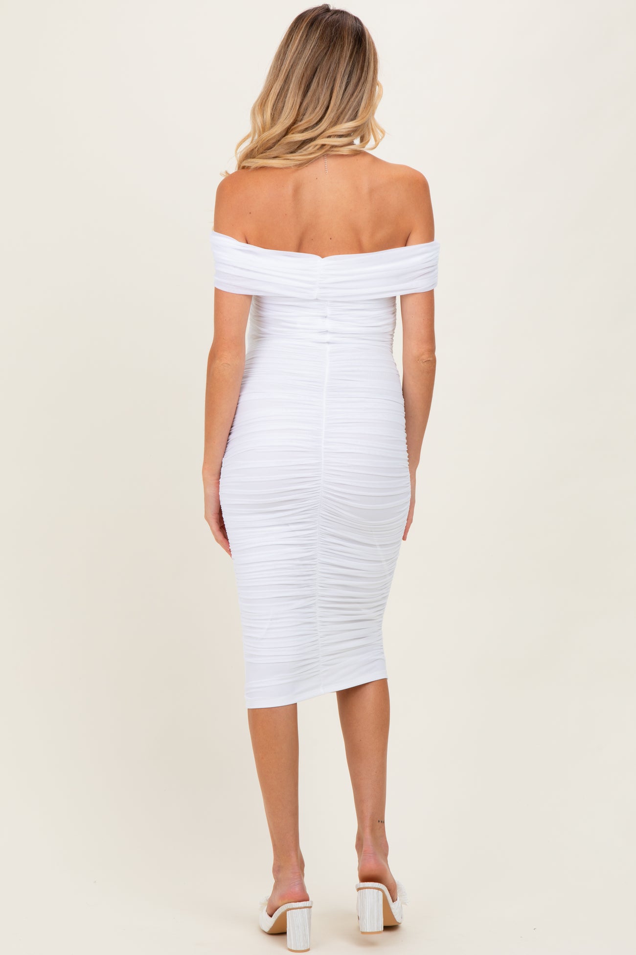 White Mesh Off Shoulder Twist Front Maternity Midi Dress