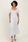 White Popcorn Smocking Bubble Sleeve Midi Dress