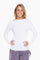 A ribbed, lightweight top with long sleeves and lettuce trim along the neckline, sleeve openings, and the hem.