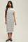 Elevate your everyday style with our White Striped Knit Button Detail Midi Dress. Crafted from a soft, breathable knit fabric, this midi dress features classic horizontal black stripes on a crisp white base for a timeless look. The button detail along the front adds a chic touch, while the relaxed fit and cap sleeves ensure comfort and ease of movement. Perfectly versatile, this dress can be dressed up with heels or kept casual with flats. Ideal for work, weekend outings, or cozy days at home, this striped knit dress is a must-have addition to your wardrobe. Available in all sizes.