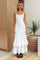 White Textured Shoulder Tie Layered Hem Maxi Dress
