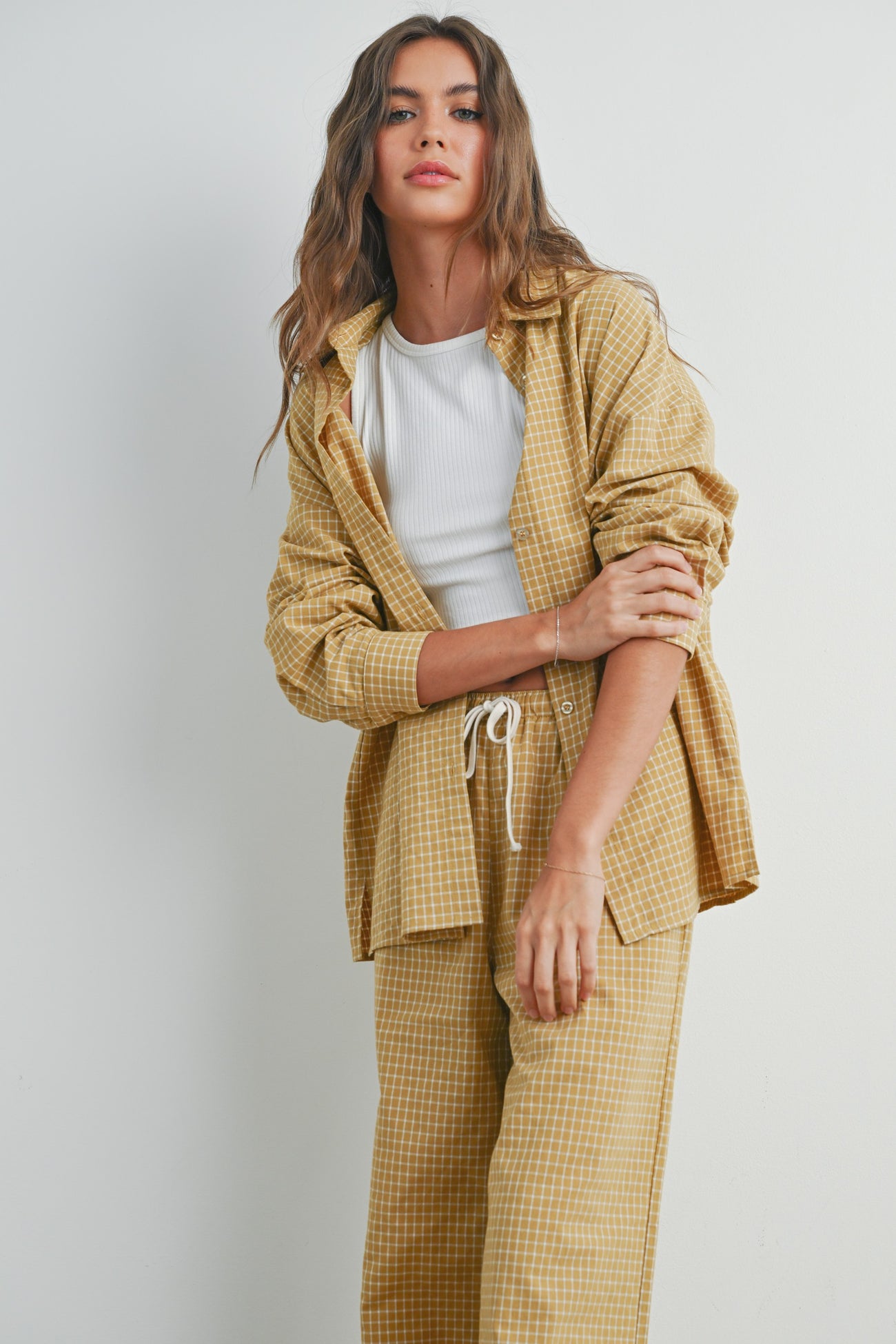 Yellow Checker Plaid Button Down Shirt