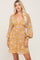Yellow Floral Chiffon Pleated Long Sleeve Dress