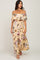 A floral maxi dress featuring a fold-over off shoulder neckline.