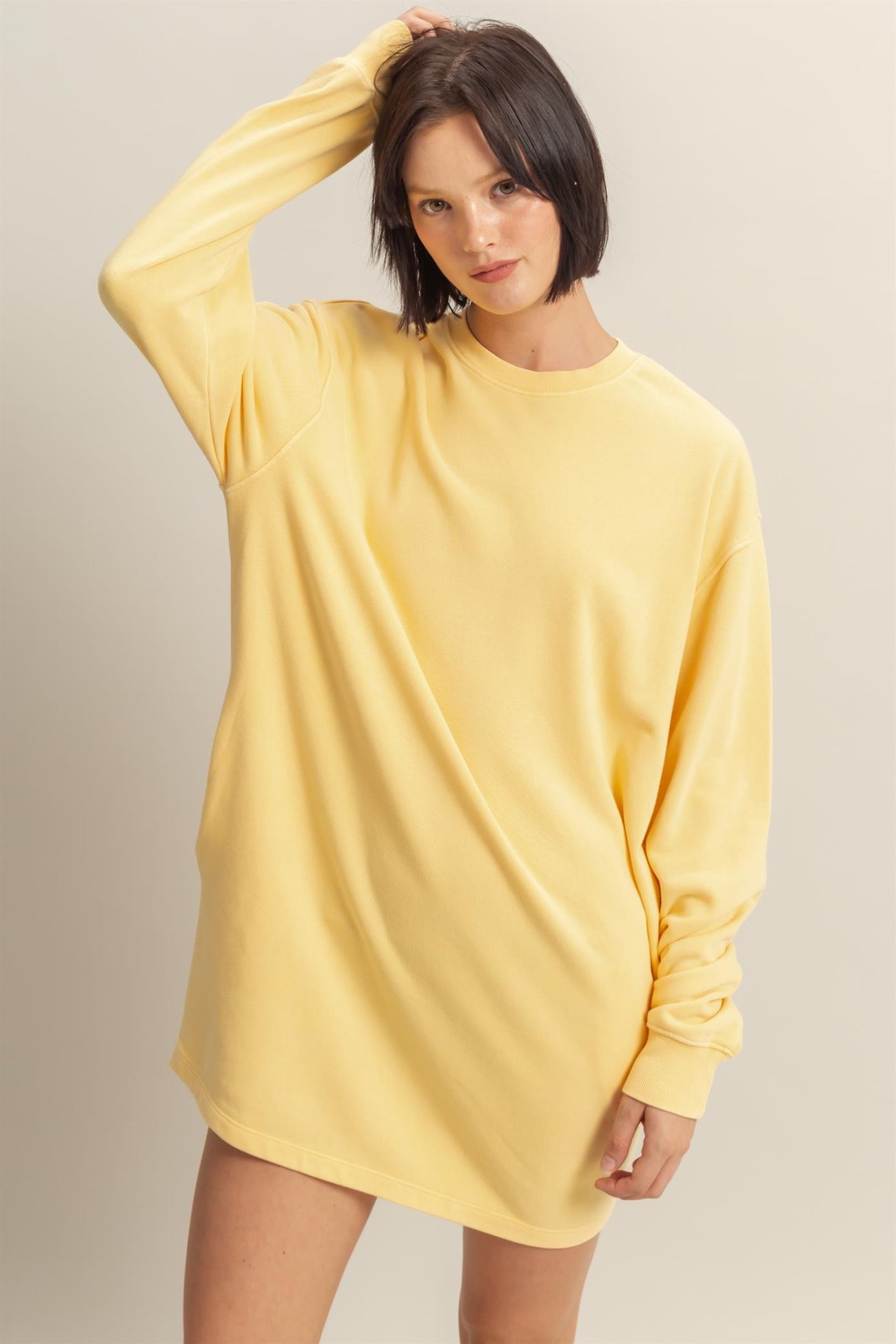 Yellow Long Sleeve Oversized Sweatshirt Mini Dress