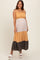 A ditsy floral maternity maxi dress with a squared neckline, adjustable shoulder ties, a smocked top, side pockets, and a colorblock tiered skirt.
