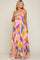 Details A printed maternity maxi dress with a halter neck tie, a ruched bust, a smocked back, and a gathered bottom tier. Dress is fully lined. Content + Care