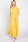 A solid hued maxi dress featuring a ruffled waist, short sleeves, side pockets and a rounded neckline.