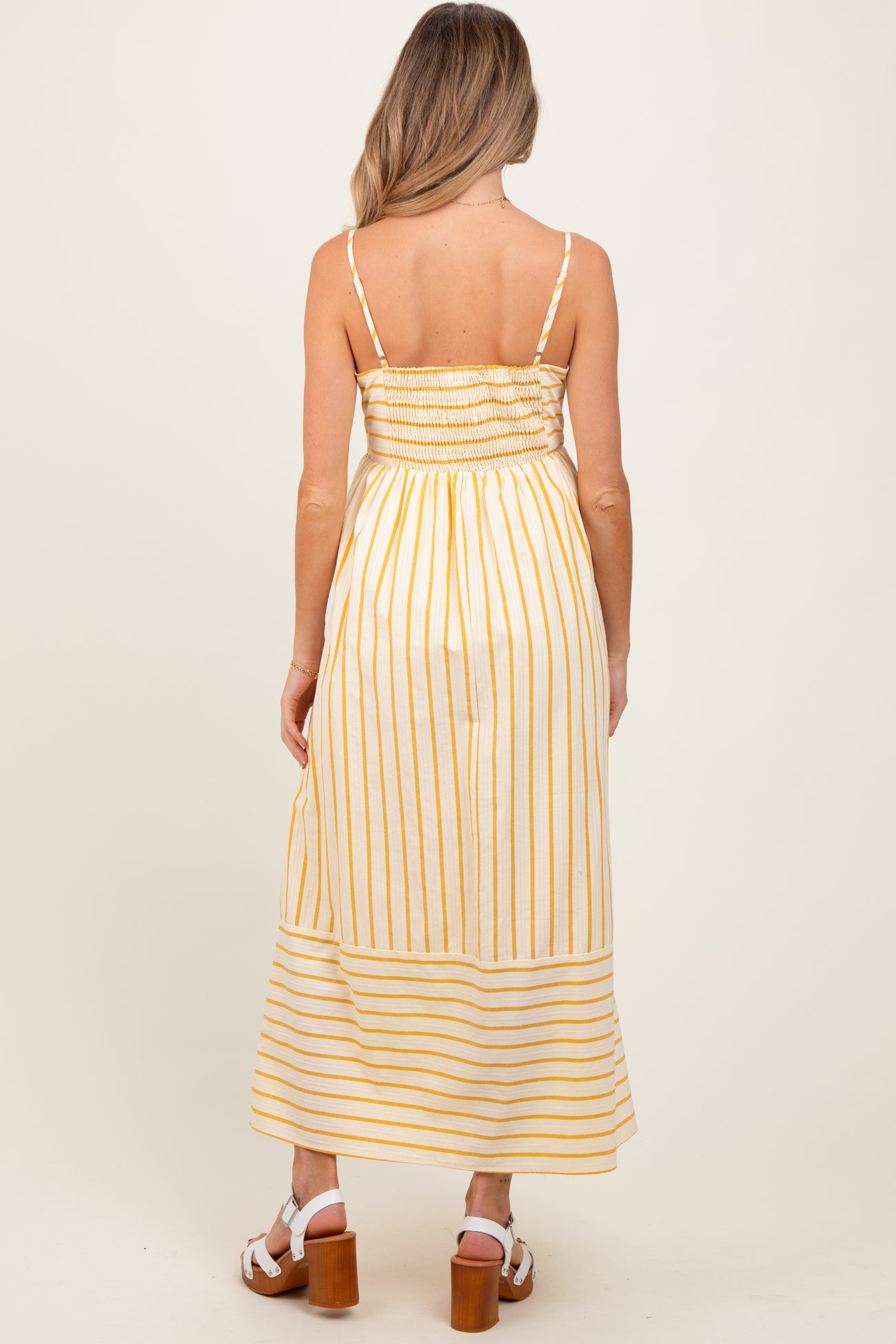 Yellow Striped Sleeveless Maternity Maxi Dress